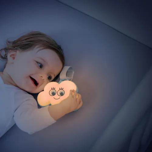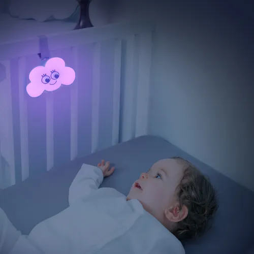 The Cloud Night Light is perfect for calming baby with its soft glow and peaceful sounds, whether at home or on the go.